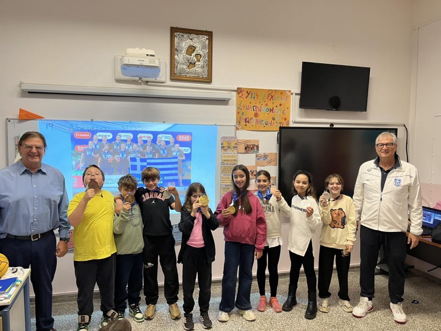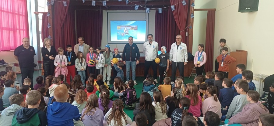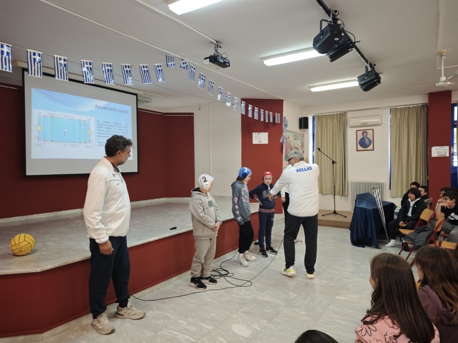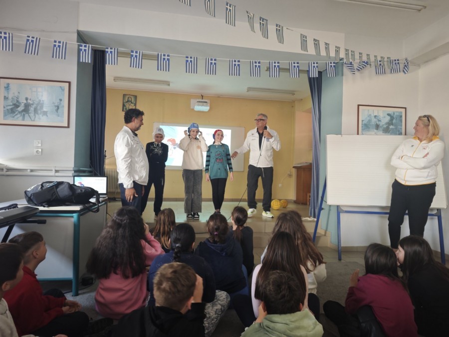 - -στα σχολεία όπου υπήρξε μια ολοκληρωμένη παρουσίαση του αθλήματος και απάντησαν σε πολλές ερωτήσεις των μικρών που έδειξαν πολύ μεγάλο ενδιαφέρον και ενθουσιασμό. Οι μαθητές όπως και οι δάσκαλοί τους είχαν την ευκαιρία να δοκιμάσουν μπάλες και σκουφάκια και να θαυμάσουν μετάλλια που κατέκτησαν οι εθνικές μας ομάδες.