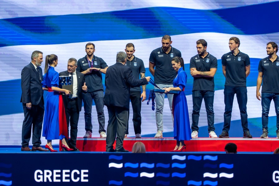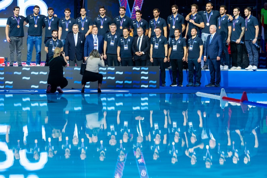 Στο βάθρο η Εθνική μας ομάδα Υδατοσφαίρισης των Ανδρών. Λίγη ώρα μετά την ολοκλήρωση του τελικού στο Ευρωπαϊκό πρωτάθλημα, που ολοκληρώθηκε την Κυριακή (25/1) στην «Belgrade Arena» έγιναν οι απονομές των μεταλλίων.