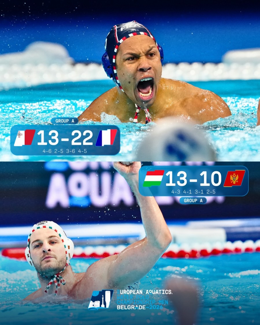 Για τη 2η αγωνιστική του α’ ομίλου: Η Ουγγαρία νίκησε 13-10 το Μαυροβούνιο και «καπάρωσε» την πρώτη θέση. Στο άλλο ματς του ομίλου η Γαλλία νίκησε άνετα 22-13 την Μάλτα και σε δυο μέρες (14/1) κόντρα στο Μαυροβούνιο θα παιχτεί η κριθεί η δεύτερη θέση στον όμιλο.