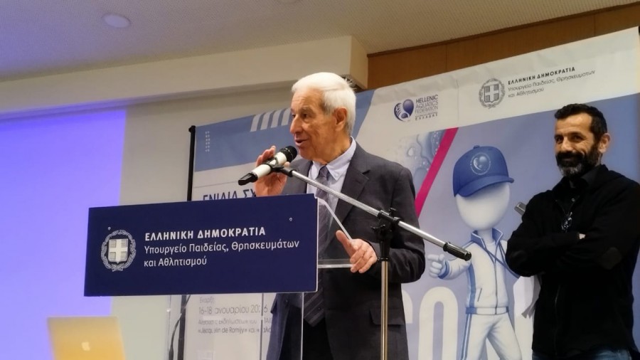 Χαιρετισμό απηύθυναν επίσης, ο γενικός διευθυντής οργάνωσης αθλητισμού της ΓΓΑ, Βασίλης Κάκος και ο προϊστάμενος του τμήματος εκπαιδευτών και προπονητών αθλημάτων ΓΑ, Σίμος Βραχνός.
