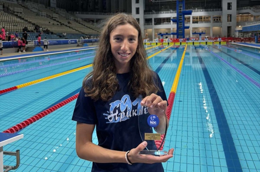 Η 14χρονη αθλήτρια, με επίδοση 2:33.26, σημείωσε πανελλήνιο ρεκόρ στα 200 πρόσθιο Παγκορασίδων Α’.