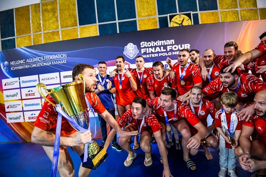 Αρχηγού παρόντος... Ο Ντίνος Γενηδουνιάς οδήγησε τον Ολυμπιακό στην κατάκτηση του Stoiximan Κυπέλλου Ελλάδας, πετυχαίνοντας, μάλιστα, το νικητήριο γκολ στον τελικό με αντίπαλο τον Παναθηναϊκό (13-12), που διεξήχθη στο κολυμβητήριο της ΣΣΕ στη Βάρη.