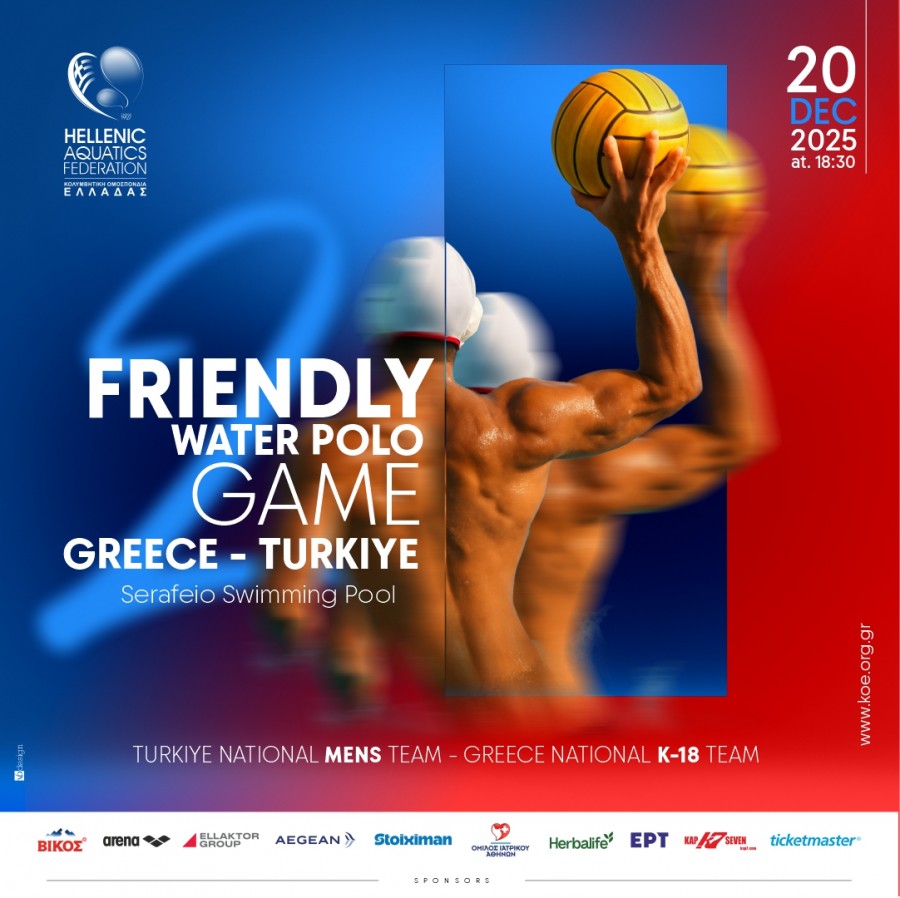 Το Σάββατο 20/12, στις 18:30, εξάλλου, θα γίνει το επίσημο φιλικό προετοιμασίας της Εθνικής μας ομάδας υδατοσφαίρισης των Εφήβων Κ18 με την Εθνική ομάδα Ανδρών της Τουρκίας, που βρίσκεται στη χώρα μας.